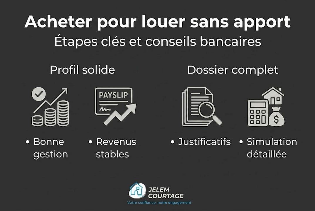 Un dossier sans apport doit compenser l'absence de capital par une démonstration claire de votre sérieux, de votre capacité à gérer un patrimoine et de la viabilité économique du projet. Voici comment procéder de façon structurée.